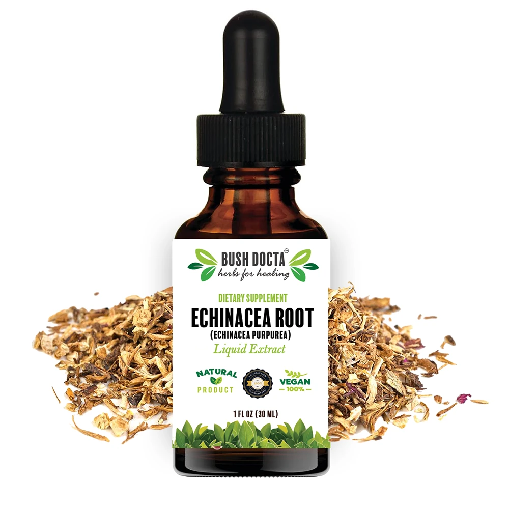 Our Bush Docta Echinacea Liquid Extract is derived from high-quality echinacea, celebrated for its immune-supporting benefits. Traditionally used to bolster the immune system, echinacea helps fight off infections and reduce the duration of colds and flu. It also possesses anti-inflammatory properties, aiding in the reduction of inflammation and promoting overall health. This convenient liquid extract is easy to incorporate into your daily routine by adding it to water, juice, or your favorite beverage. Perfect for anyone looking to naturally strengthen their immune defenses and support overall wellness. (1 oz | 112 g)
