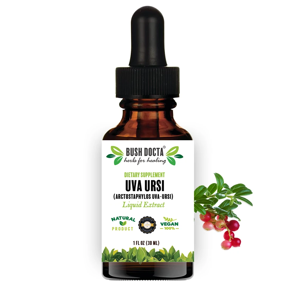 Our Bush Docta Uva Ursi Liquid Extract is made from high-quality uva ursi leaves, known for their urinary tract support. Uva ursi helps cleanse the urinary tract, reduce inflammation, and fight infections such as UTIs. It also acts as a natural diuretic, promoting healthy urine flow. This convenient liquid extract can be easily added to water or juice, making it ideal for those seeking natural support for urinary health. (1 oz | 112 g)